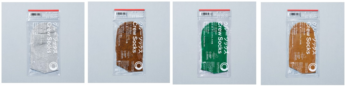 婦人用のクルーソックス。つま先、かかとには補強糸を使用し、耐久性を高めた。抗菌防臭加工なのでニオイにくい。カラーはグレーMIX、パンプキンMIX、みどり、からしの4色、価格は429円。