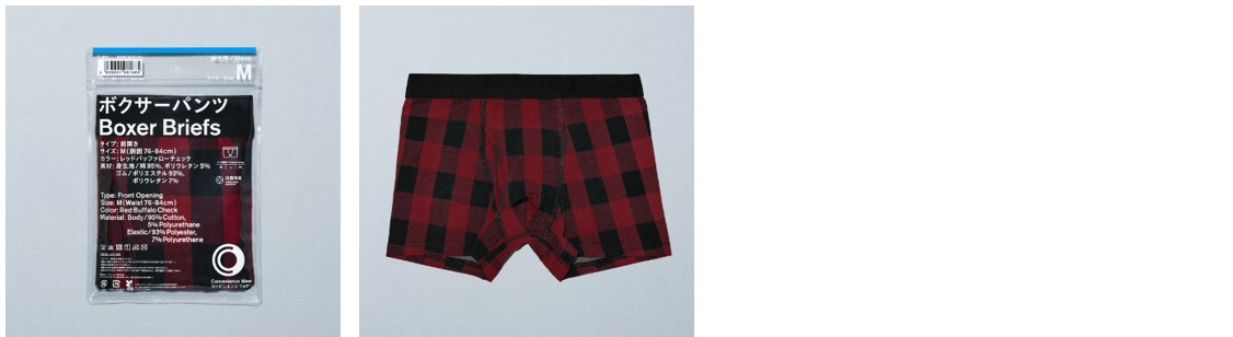 紳士用のボクサーパンツ。抗菌防臭加工でニオイにくい。カラーはレッドバッファローチェック1色、サイズはM・L・XL、価格は720円。
