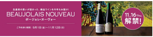 11月16日(木)のフランス産の新酒ワイン「ボージョレ・ヌーヴォー」解禁に向け、9品目の希少なワインを直輸入して販売する。