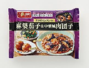 ごろっと大きな茄子の麻婆茄子と、甘辛だれが効いた中華風肉団子ので食べ応えのあるセット。220g。