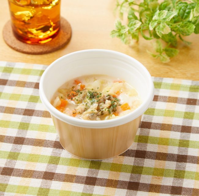 濃厚なミルクの味わいが特長のクラムチャウダー。じゃがいも、人参、玉ねぎ、あさりをトッピングし、食べ応えのあるスープに仕立てた。あさりや魚介の旨みに加え、白ワインのコクにより食べやすい味わいに仕上げた。397円。