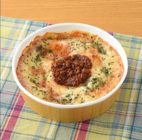 生パスタのもちもち食感と、とろっとしたホワイトソース、トマトのソース、ボロネーゼソースがまろやかに絡み合ったラザニア。ソースのクリーム感をアップし、生パスタの厚みを変更することで、よりパスタとソースの一体感のあるラザニアに仕立てた。上にかかったたっぷりのチーズで、とろける食感も楽しめる。462円。