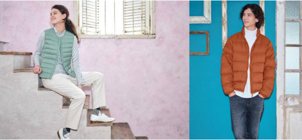 イオンでは昨2022年、衣料品のサステナブル化への取り組みの一つとして、100%リサイクル素材のダウンを使用したウォッシャブルリサイクルダウンを販売した。今年はリサイクルダウンをしようすることに加え、表地にも再生ナイロンまたは再生ポリエステルを使用した、リサイクルダウンシリーズを発売する。トップバリュのリサイクルダウンは手洗いが可能な点も特徴だ。