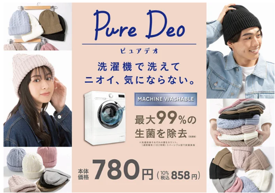 (株)ベイシア(群馬県前橋市、相木孝仁社長)は9月22日(金)より、秋冬シーズンの新作ニット帽「Pure Deo(ピュアデオ)」を63店舗で販売開始した。