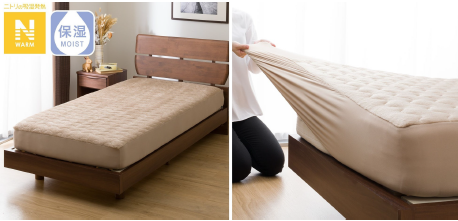シーツと敷パッドの⼀体型で、洗うのも⼲すのもこれ1枚で済む家事ラク敷パッド。側⾯が伸びるので取り付けもラク、ぴったりフィットしてずれにくい。厚さ38cmまでのマットレスに対応しており、敷ふとんにも使える。シングルサイズ(幅100×奥⾏200㎝)のみ。Nウォームは3490円、Nウォームスーパーは4490円、Nウォームダブルスーパーは5490円。