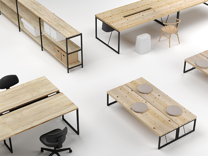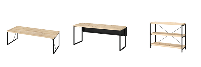 中空パネルを使用した家具に加えて、新たなパネル2種類を使った家具を共同企画、商品化した。使用する国産材の産地指定ができるようになる。また国産の木材パネル3種類に組み合わせるため、フレームや脚として使用するスチールパーツを再設計している。