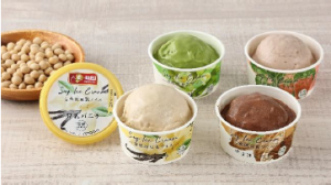 滋賀県産大豆100%使用の豆乳でつくられたプレミアムアイス。乳化剤・増粘剤を使用していないのになめらかな食感があり、やさしい甘さとあっさりとした後味が特徴。乳・卵不使用なので、乳・卵アレルギーの人でも安心して食べることができる。