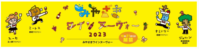 ”みやざきワイン”推進実行委員会は、宮崎県商工会議所連合会、宮崎商工会議所や県内企業が参加して2015年から活動している。「みやざきワインの販売促進を通し、『じもの・地元』にこだわり、宮崎の“いいもの”を発信し、地元宮崎に貢献する」をコンセプトに、今年で9回目の活動となる。毎年10月の第3土曜日をみやざきヌーヴォーワインの解禁日と定めている。