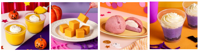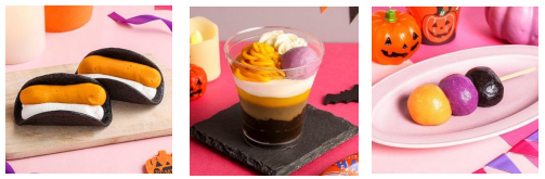 いずれの商品もオレンジや紫、ピンク、黒などハロウィンらしい色づかいのスイーツだ。