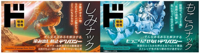 (株)ドン・キホーテ(東京都目黒区、吉田直樹社長)は、オリジナルブランド「情熱価格」の先進的男性用下着シリーズ「ドンキ・テクノロジー」から、メンズ特有の細かい悩みをカバーするボクサーパンツ「しみナック」「もこらナック」を10月から発売している。両品ともに税込1098円。全国のドン・キホーテ系列店舗で販売する。