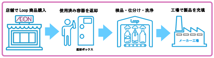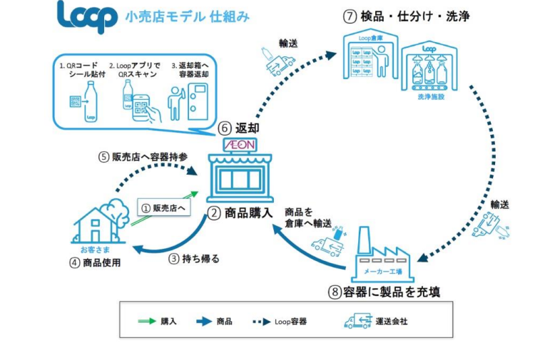 グローバルに展開するソーシャルエンタープライズ「Loop Japan 合同会社」と、日本国内の日用品・食品メーカー各社とイオンリテールが協力し、容器を回収、洗浄し再利用する「Loop」の取り組みを実施することで、これまでの“使い捨て”から“繰り返し使う”ライフスタイルへとシフトさせる。