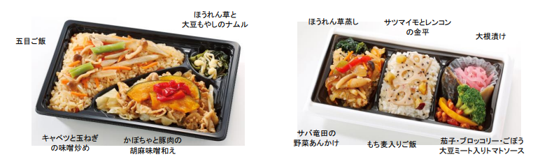 今期は第1弾商品を8月に販売した。第2弾は、1日に必要な野菜の3分の1を摂取することができる「かぼちゃと豚肉の胡麻味噌和え弁当」と、サバの竜田揚げ、野菜やきのこ類など14種の具材を使った「14種の具材和風弁当」の2品。