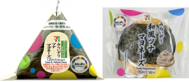 「みらいデリ おにぎり ツナマヨネーズ」と「みらいデリ おむすび 和風ツナマヨネーズ」は、黄エンドウ豆由来の原料と通常のツナを使用したツナマヨネーズを使用する。出汁を加えることによって魚介の風味を感じられるツナマヨネーズにリニューアルした。