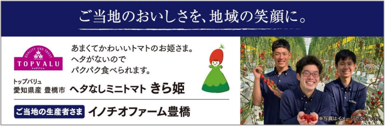 マックスバリュ東海(株)(静岡県浜松市、作道政昭社長)は11月16日(木)、地域開発商品“じもの”「トップバリュ 愛知県産 豊橋市ヘタなしミニトマト きら姫」を発売する。愛知県・静岡県・三重県・岐阜県・神奈川県・山梨県のマックスバリュ、マックスバリュエクスプレス109店舗で販売する。