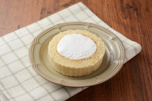 歯切れが良くふんわりとした食感のスポンジ生地は、卵・バター・白砂糖を使用せず、焙煎した小麦粉、沖縄県産のさとうきびからつくられた砂糖を使って焼き上げた。この生地で生クリームの代わりに豆乳・オーツ麦を使用した、甘さ控えめのクリームを巻いた。257円(税込み、以下同じ)。