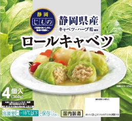 「静岡県産キャベツ・ハーブ鶏使用ロールキャベツ」は、静岡県産ハーブ鶏ささみを使用した中具を、静岡県産キャベツで、1つずつ丁寧に手巻きした。1袋360gで498円(本体価格)。