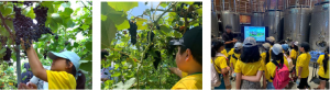イオン九州では、今年の8月末、「ぶどうの樹ワイナリー」のぶどう畑でイオン チアーズクラブの子どもたちの収穫体験を実施した。子どもたちは収穫体験後、ぶどうジュースやワインができるまでの工程を学んだ。