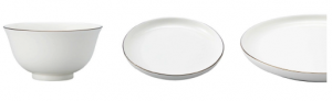 「ボーンチャイナ」シリーズは、薄くて軽量なのに、⼀般的な磁器と⽐べ耐久性がある。乳⽩⾊で光沢感があり、料理が映えるという特徴がある。今回新たに、ふちに銀線をあつらえた「シルバーライン」シリーズを開発いした。シルバーラインのアクセントがよりおしゃれな雰囲気を醸し出していて、クリスマスなどの特別な⽇にもぴったりだ。銀線があっても⾷洗器や電⼦レンジが使えるので、⽇常的にも使いやすい。カラーはホワイト。