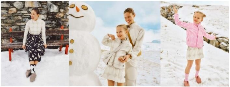 ゆったりシルエットのフリースフルジップジャケットとスカートは、大人と子供がペアで楽しめるデザイン。また、内側に起毛加工を施した柔らかな肌触りのヒートテックタートルネックT は、インナーとしても重ね着アイテムとしても活躍できる。その他、ヒートテックソックスとラウンドミニショルダーバッグなども品揃えする。