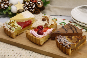 「ベイクドチーズケーキ」「ピスタチオと苺のタルト」「モンブランタルト」「ベリータルト」「ベルギーチョコムース」「フロランタンショコラタルト」の6種のアソートケーキ。チョコやチーズ、フルーツソースを彩り良く組み合わせ、クリスマスらしく華やかに仕立てている。6個入りで 980円。