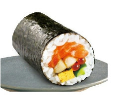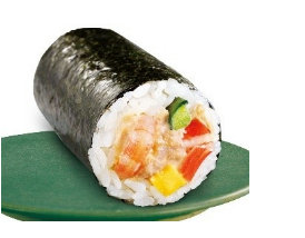 「海の幸 海鮮恵方巻」はミニサイズで798円。具材はほたて、サーモン、いくら、厚焼き玉子、胡瓜、大葉。厳選した国産の海鮮具材(ほたて、サーモン、いくら)をバランスよく使用した。数量限定商品。
