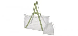 グリーンの持ち手付きのこのバッグは、通気性に優れたホワイトのメッシュ生地でできている。湿ったウェアを入れるのにぴったり。内側が3つのスペースに仕切られているので、ジムを出るときに、湿ったタオルや汗の付いたウェアをほかのものと分けて入れることができる。バッグの内側が透けて見えるので、中身がひと目でわかり、すばやく必要なものを見つけられる。鍵などの小さいものを整理できる小さなインナーバッグ付き。 価格は 799円。