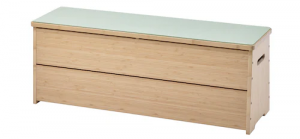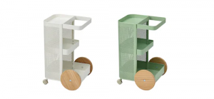 エクササイズグッズを収納するための商品。丸めたヨガマットのような長細いものを収納するスペースもある。同じシリーズのタオルとリラックスポンチョの両方をハンドルに掛けることができる。前側に大きな竹製キャスター、後ろ側に小さなプラスチック製キャスターが付いている。 エクササイズが終わったら、ダイニングテーブルやデスクの下に収納できる。色は2種類。価格は 9990円(税込み、以下同じ)。