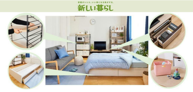 2~4月は、入学・就職、転勤など新生活の準備を始める方や引っ越しが増える時期だ。ホームコーディでは、新しい暮らしを応援するために「空間効率」「時短」「家事の味方」の3つのテーマで快適に過ごすための商品を提案する。