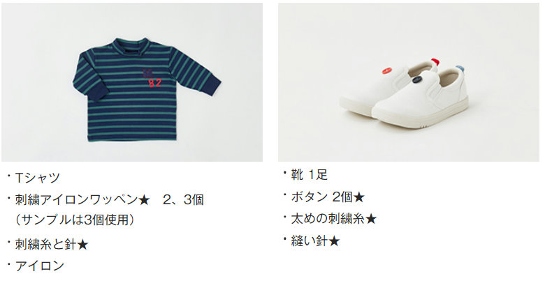 アイロン接着フェルトや刺繍ワッペン、チロルリボン、ナットボタンなど、150を超えるアイテムを発売。写真で使用した★はFoundMUJIで販売している。
