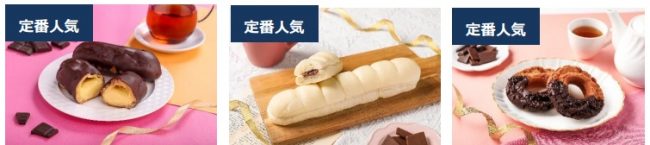 定番人気のスイーツは、「カスタードエクレア」168円(本体価格、以下同)、「国産小麦使用 チョコクリームのちぎりパン」150円、チョコがけドーナツ「チョコオールドファッション」128円をラインアップしている。