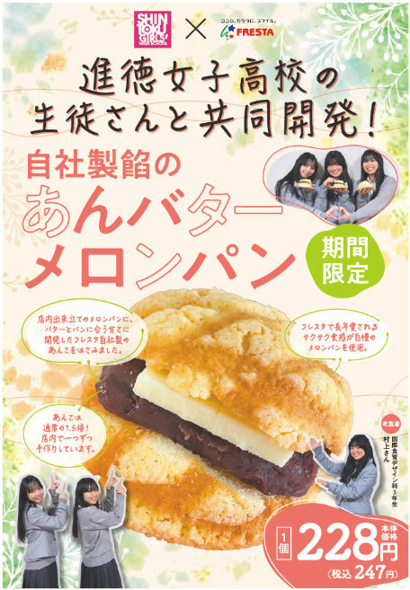 フレスタnews|進徳女子高校とコラボ「自社製餡のあんバターメロンパン」販売