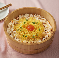 錦糸たまごもセットになった、五目ちらし寿司の素。まろやかな酢めしに仕上がるように、だし酢には香りの良いかつおだしと米酢を合わせた。みりんやだしなどで味付けした、たけのこや人参、かんぴょうなどもセットに入っている。ひな祭りなどのハレの日の食卓を彩るごはんにおすすめ。2合用(2~3人前)で890円。