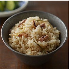 ごはんとの相性の良い、たこを具材に使った炊き込みごはんの素。たこのうまみを生かし、昆布と生姜を合わせることで風味も良い炊き込みごはんに仕上げた。2合用(2~3人前)で490円。