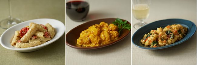 「ニョッキかぼちゃのクリームソース」は「もちもち食感がくせになるニョッキに、かぼちゃのペーストをたっぷりつかったソースをあわせた。かぼちゃの甘み、生クリームのコクにシナモンをきかせて風味よく仕上げた」。そのほか、ソースがよく絡む形のコンキリエを使用。