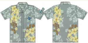 勝利の道へ導く眩しい沖縄の光と賛美するフラワーのブーケをイメージした。琉球ゴールデンキングスのロゴを胸と袖にあしらった。サイズは SS、S、M、L、LL、3L、4L、5L、素材はポリエステル100%、カラーはグリーングレー×イエロー、ベージュ。