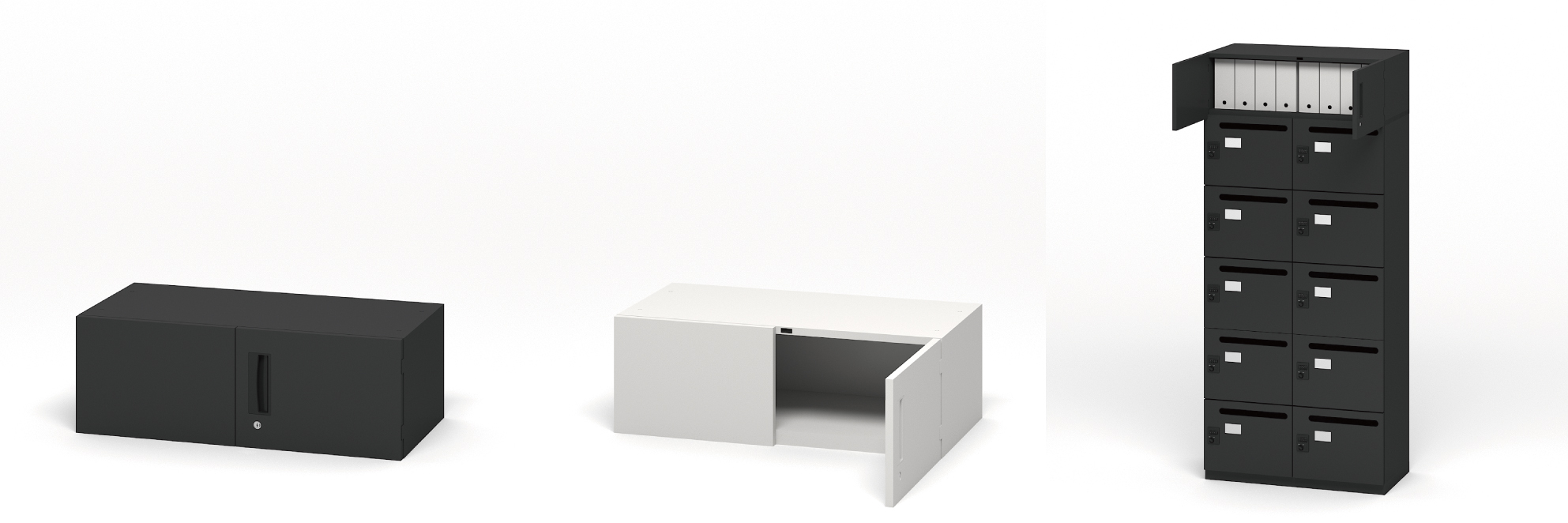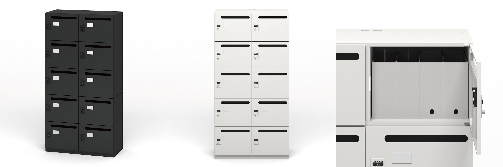 「スチールロッカー 個人ロッカー 10人用」(税込24万円)は、高さを抑えることで、通常使いにくくなる最上段も荷物が取りやすい高さに仕上げた。