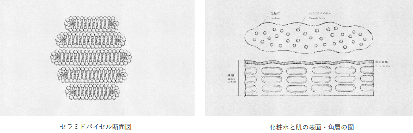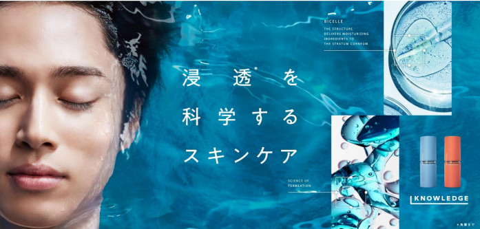 KNOWLEDGEの浸透ローションや浸透ミルク、スカルプエッセンスは、セラミド等の美容成分を配合した「セラミドバイセル」を使用している。毛穴の 1/10000の大きさのミルフィーユのような構造の中に3種のうるおい成分を含んだ極小サイズのカプセル「セラミドバイセル」が、失われがちな肌本来が持つ保湿成分や美容保湿成分を角層まで送り届けると同時に、肌のバリア機能をサポートする。肌の水分・油分バランスを整え、日々悩まされる大人の男性肌を健やかな肌へ導く。