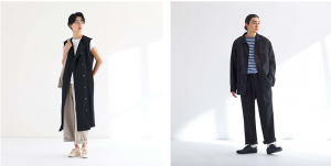 婦人アイテムでは、二通りの着こなしができるジレワンピースやストレッチの効いたスカートやパンツ、UVカット機能をもたせたニット、ゆったりしたシルエットの半袖ブラウスなどを展開する。白・黒などのモノトーンやベージュ、グレーなどのベーシックカラーとダークグリーンなどのアクセントになるカラー展開で、オン・オフで着用できる。紳士アイテムでは、セットアップでも着用できるシャツジャケットとストレートパンツ、羽織としても使える長袖シャツなど着回しがしやすいアイテムを揃えた。