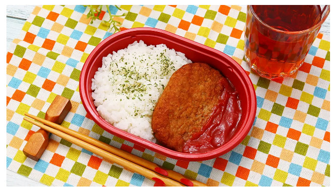 記念すべき第10弾となる「だけ弁当」は、マルシンフーズが1962年から販売しているベストセラー商品の「マルシンハンバーグ」が登場する。白いご飯に「マルシンハンバーグ」丸ごと1個をトッピングし、その上にケチャップをかけたシンプルな弁当だ。サラダや野菜のお浸し、味噌汁などを組み合わせれば、栄養バランスの取れた「一食」がワンコインで完成する。