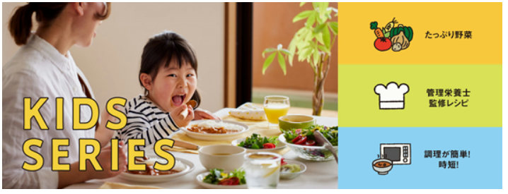 リニューアルされたキッズシリーズには4つのこだわりがある。1つ目は1商品に5種類以上の国産野菜を使用すること。2つ目は年齢に合わせた豊富なラインナップ・各年齢に合わせた具材の種類や大きさにすること。3つ目は管理栄養士監修のレシピを使用し、社内モニターも実施して意見を反映させたこと。4つ目は忙しくても簡単に調理できる仕様になっていることだ。