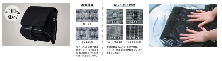 同社ランドセルより約30%軽い超軽量の840g。Nシールド加⼯した⽣地を使用し、ひっかきキズに強く⽑⽟が出にくい。さらに汚れがつきにくい防汚加⼯とはっ⽔加⼯済みの素材も使用しており、汚れても丸洗い(⼿洗い)ができる。カラーはブラック、パープル、グレーの3色、価格は1万9900円(税込み、以下同)。