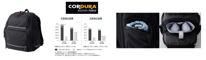 かぶせが取り外しでき、遠⾜や課外授業などシーンを選ばないデザイン。軽量ではっ⽔性も優れているが、⾮常にタフなCORDURA®素材を使用し、過酷な環境下にも強い。さらにポケットが12個付いている。カラーはブラック、パープル、グレーの3色、重さはかぶせなしで約899g、かぶせありで約999g。価格は2万9900円。