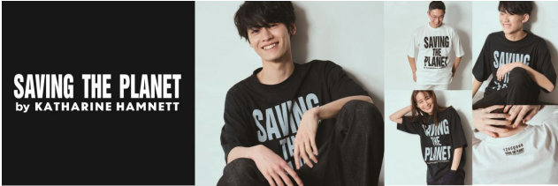 イオンはキャサリン・ハムネット氏と2020年3月に「SAVING THE PLANET 」プロジェクトを立ち上げ、オーガニックコットンブレンドやリサイクルポリエステルなどの環境配慮型素材を使用した商品を展開している。