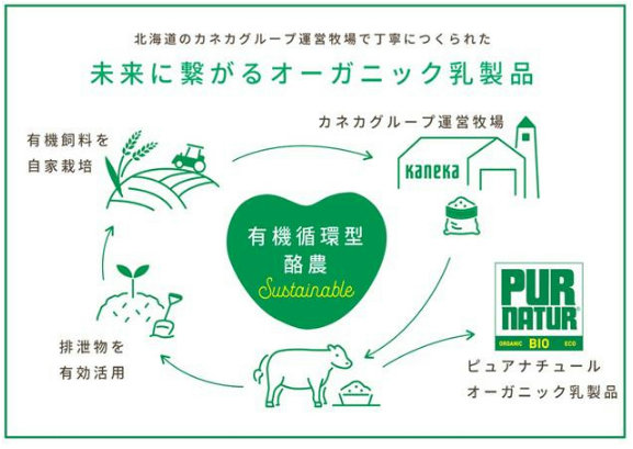 同商品を生産するための生乳は「有機循環型酪農」を利用し、地球環境への負荷を低減しながらつくられている。