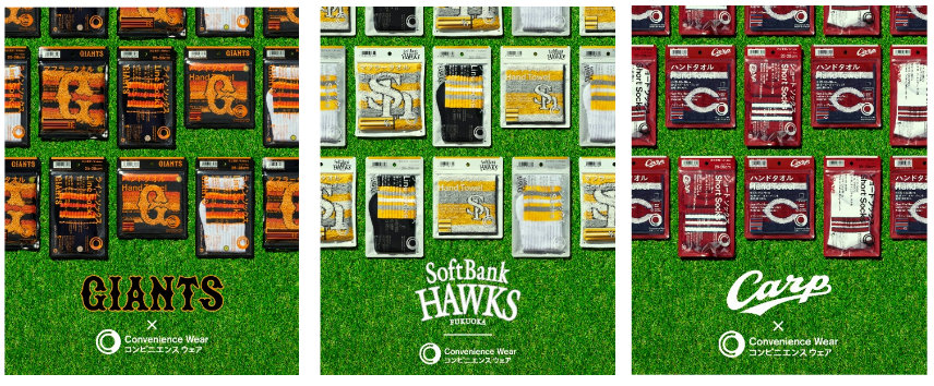 2023年3月、プロ野球球団「広島東洋カープ」とのコラボレーションアイテムを発売し好評だったこともあり、新たに「読売ジャイアンツ」と「福岡ソフトバンクホークス」とのコラボレーションが実現した。「コンビニエンスウェア」で人気のソックス、タオルを球団のテーマカラーを随所に取り入れたデザインに仕上げた。また「広島東洋カープ」のコラボレーションアイテムには新たにショートソックスを加えて発売する。