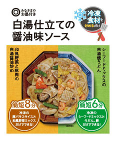 「白湯仕立ての醤油味ソース」は、白湯スープがベースの醤油味。みじん切りのニンニクとショウガが入った食欲をそそる味付けが簡単にできる。本体価格129円。