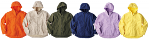 サイズはS、M、L、LL。色はオレンジ、ベージュ、カーキ、ネイビー、パープル、イエローで展開する。ただし、カーキ・ネイビー・ベージュには3Lがあるが、パープルにはLLがない。価格は2900円(税込み、以下同じ)。
