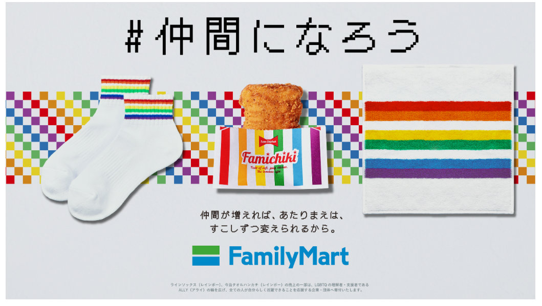 ファミリーマートは、LGBTQの理解者・支援者であるALLY(アライ)の輪を広げ、すべての人が自分らしく活躍できる社会を目指すことを応援している。さらに、事実婚や同性パートナーにおいても加盟申込みを可能とすることをはじめ、他企業との協業、同性結婚の法制化への賛同など、多様な性への理解促進に取り組んでいる。