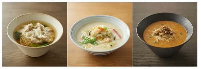 今回は「肉うどん」「きつねうどん」の2種をリニューアルし、「ちゃんぽん」「雲吞(わんたん)麺」「担々麺」を追加して冷凍麺のバリエーションを増やす。