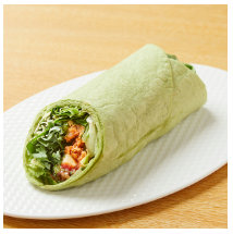 「植物生まれのチーズとケールのサラダラップ」は、ケールと大豆ミートを使用したチリソースが入ったサラダラップ。トルティーヤ生地にもケールを練りこみ、スーパー大麦、レタス、グリーンリーフ、キャベツ、ひよこ豆粉やでん粉などからできた植物性のチーズ等を入れたヘルシーな商品。価格は369円。